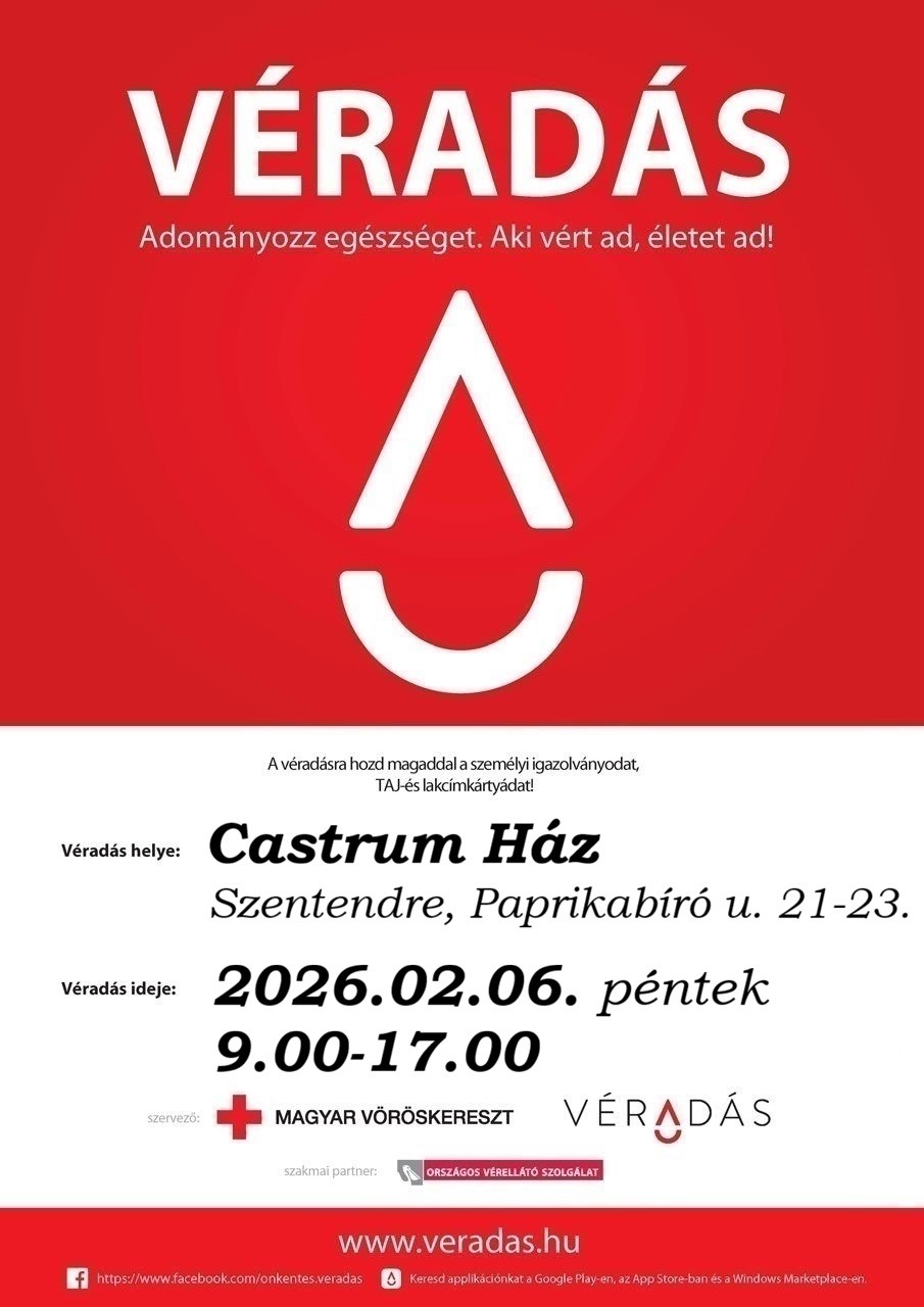 Véradás 2026.02.06-án 9:00-17:00 Castrum ház